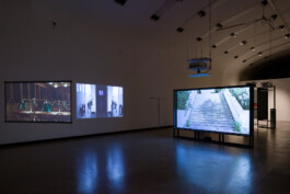 3-screen video installation, looped, color & sound, 16:9, 6 min