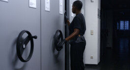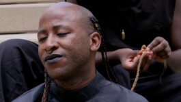 Fleshbacks (2021) is a three-part annotation to The Letter (2019). The film’s protagonists are filmed in various places in an urban setting. They are not the same performers as in The Letter, but they show a certain connection to them through the props they hold (a magnifying glass, museum-restorer tools) and the black coveralls they wear. As the work progresses, something starts shifting. They begin moving around the city— climbing stairs, running uphill and downhill, scaling ladders; they are all following an affect, what some might call a calling, leading them into a zone where the lines between Vienna and Accra, between the then and the now, as well as the here and there, become blurry and ultimately obsolete.